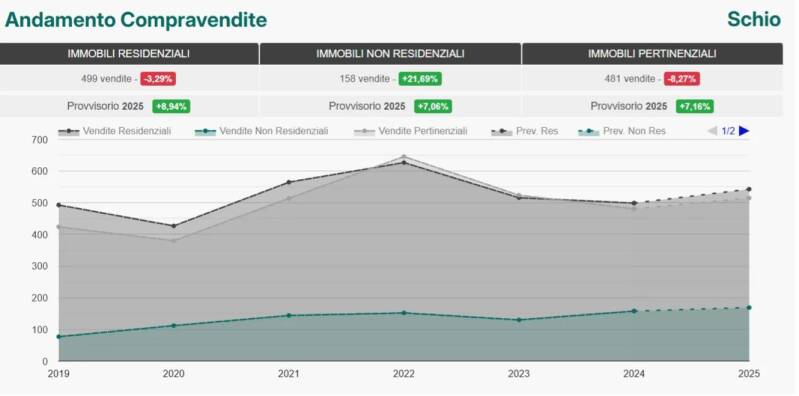 Schio, città dinamica e in crescita, ha visto un aumento costante delle compravendite negli ultimi anni, con un mercato che si distingue per un buon equilibrio tra domanda e offerta. Negli ultimi 12 mesi, le transazioni immobiliari hanno registrato una crescita del 8%, confermando la solidità del mercato.